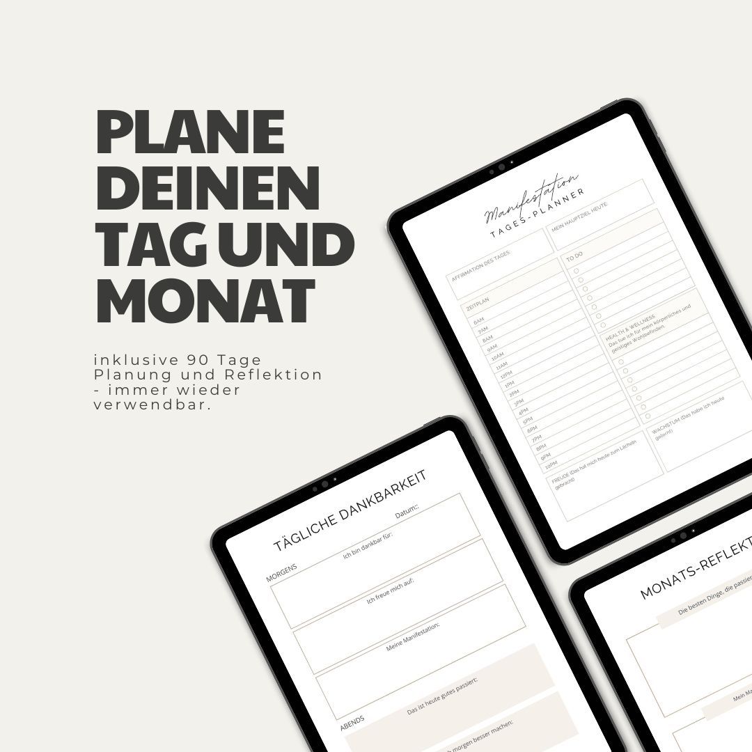 Ist es nicht an der Zeit, Selbstzweifel loszulassen, dein Herz mit Dankbarkeit zu füllen und das Leben zu erschaffen, das du verdienst? Der Manifestations-Planner ist dein erster Schritt in Richtung deiner Träume!